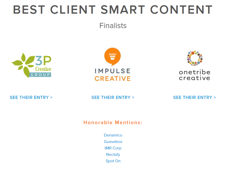 Hannah Eisenberg's Inbound Marketing agency was recognized as a finalist for the HubSpot Impact Award for Best Client Smart Content in 2015.
